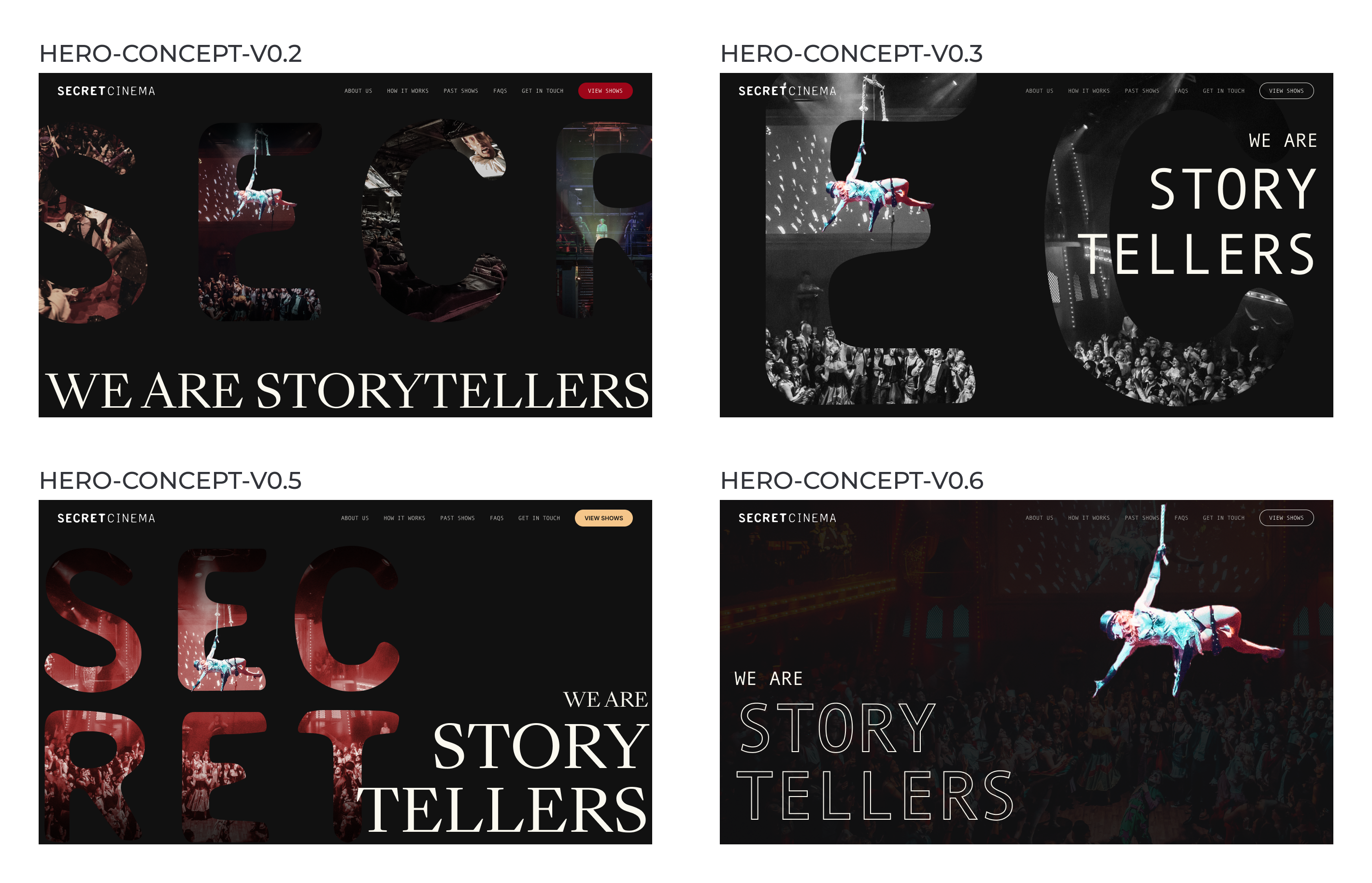 I collaborated with BIG on story-driven aesthetic cues - cinematic typography, mysterious imagery, controlled use of motion - to evoke the feel of Secret Cinema without revealing spoilers.